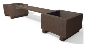 Fioriera interamente in plastica riciclata al 100% hanit® composta da N.1 seduta da 150 x 35cm realizzata con n. 3 profili di sezione rettangolare da 4,5 x 10,5 cm di cui n.2 rinforzati N.2 fioriere quadrate 69 x 69 cm realizzate con profili di sezione rettangolare da 6 x 12 cm Il fondo è realizzato con piastra di spessore 2,5 cm e provvisto di piedi per una eventuale facile movimentazione